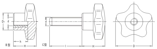 JS.102007 五星把手 顏色:亮光黑 材質(zhì):酚醛樹脂(膠木) 用途:適用于各類機(jī)械裝備、五金工具、舞臺燈光設(shè)備等行業(yè) 特性:光澤感強(qiáng)、外形美觀、機(jī)械強(qiáng)度高、堅(jiān)固耐用、標(biāo)準(zhǔn)化使用、安裝簡便。