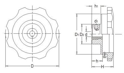 JS.105007 波紋表盤手輪 顏色:黑色 材質(zhì):酚醛樹脂(膠木)、鋁合金 用途:適用于木工、食品、包裝、印刷等機(jī)械的精密指示或讀數(shù)調(diào)節(jié) 特性:外形美觀、堅固耐用、機(jī)械式結(jié)構(gòu)